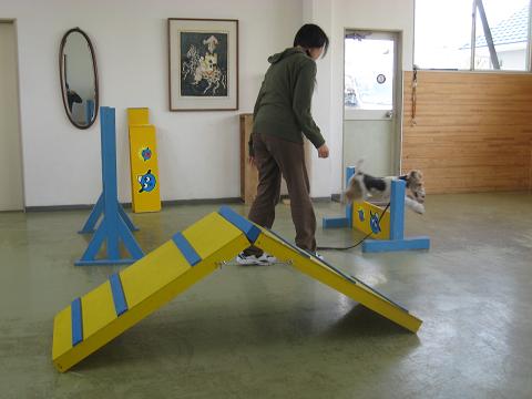 しつけの最後に ハードル2つと Aフレームを出してくれます。