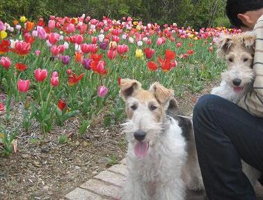 って チューリップ食べようとして 花びら落としてしまいました。