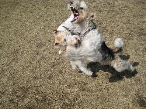 ドッチとおもちゃの取り合いして