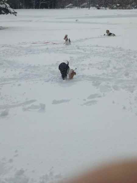 コテージ近くの雪原で わんずと 遊びましたよ。