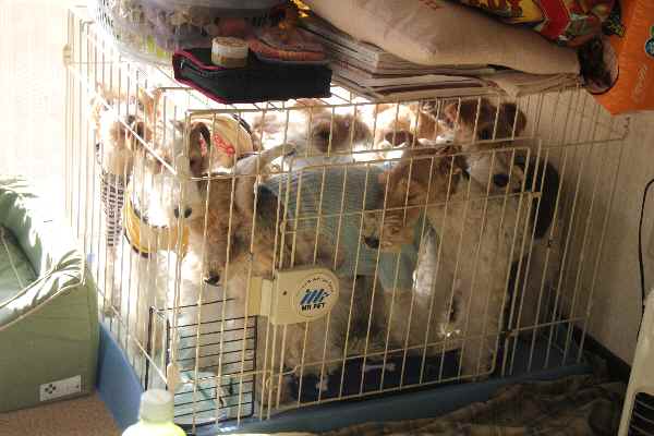 で やっぱりお疲れのわんず 各々寝場所を探し 爆睡。