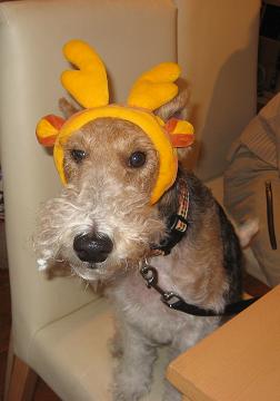 ティちゃんもかぶり物で 赤鼻のトナカイね。