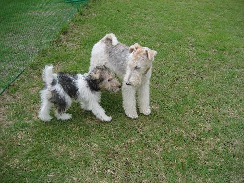 ファイブ以外のわんこと初めて接触。そ~っと近付いて行きました。